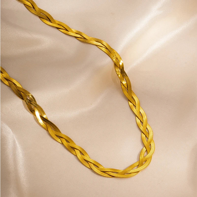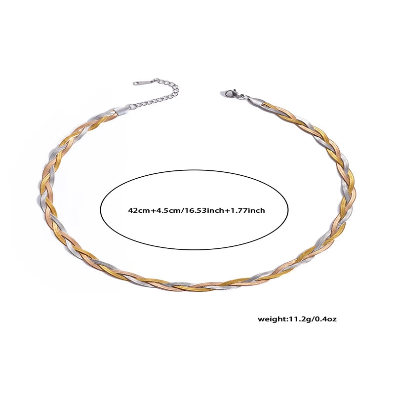 The Bonded Collection is a study in strength and simplicity—chunky, sculptural chain chokers and matching bracelets designed to hold presence. Available in high‑polish gold, silver, or a mixed tri‑tone of gold, silver and rose, these pieces ground a look without overwhelming it.