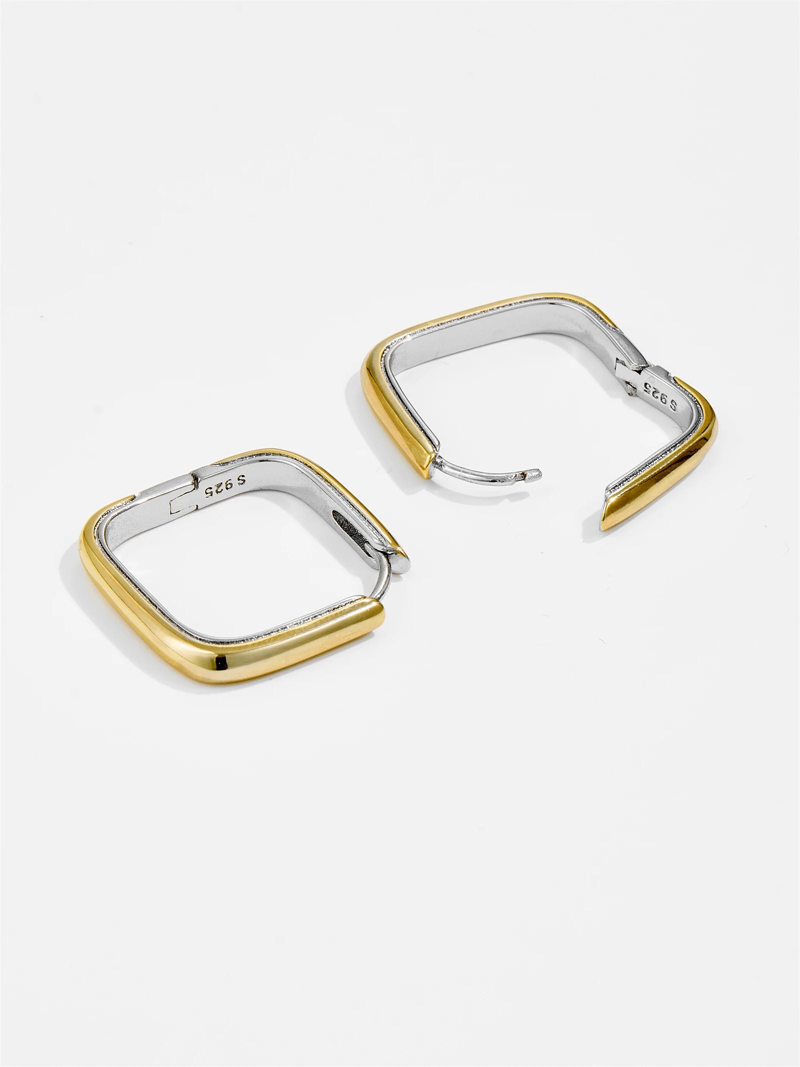 Where precision meets asymmetry; the Offset Hoops deliver a clean break from the expected. With their sharp-angled silhouette and contrasting two-tone finish, these earrings play with geometry in a way that's distinctly modern yet effortlessly wearable. Think minimalism with bite: pared back, but never passive.